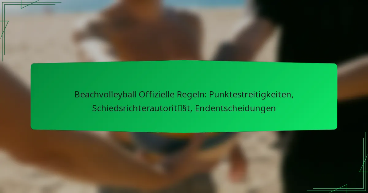 Im Beachvolleyball sind Schiedsrichter darauf trainiert, schnelle und präzise Urteile auf der Grundlage der Regeln des Spiels zu fällen. Ihre Entscheidungen umfassen verschiedene Aspekte, einschließlich Fehler, vergebene Punkte und Spielerwechsel. Das Verständnis des Umfangs dieser Entscheidungen hilft den Spielern, sich effektiv im Wettbewerbsumfeld zurechtzufinden.